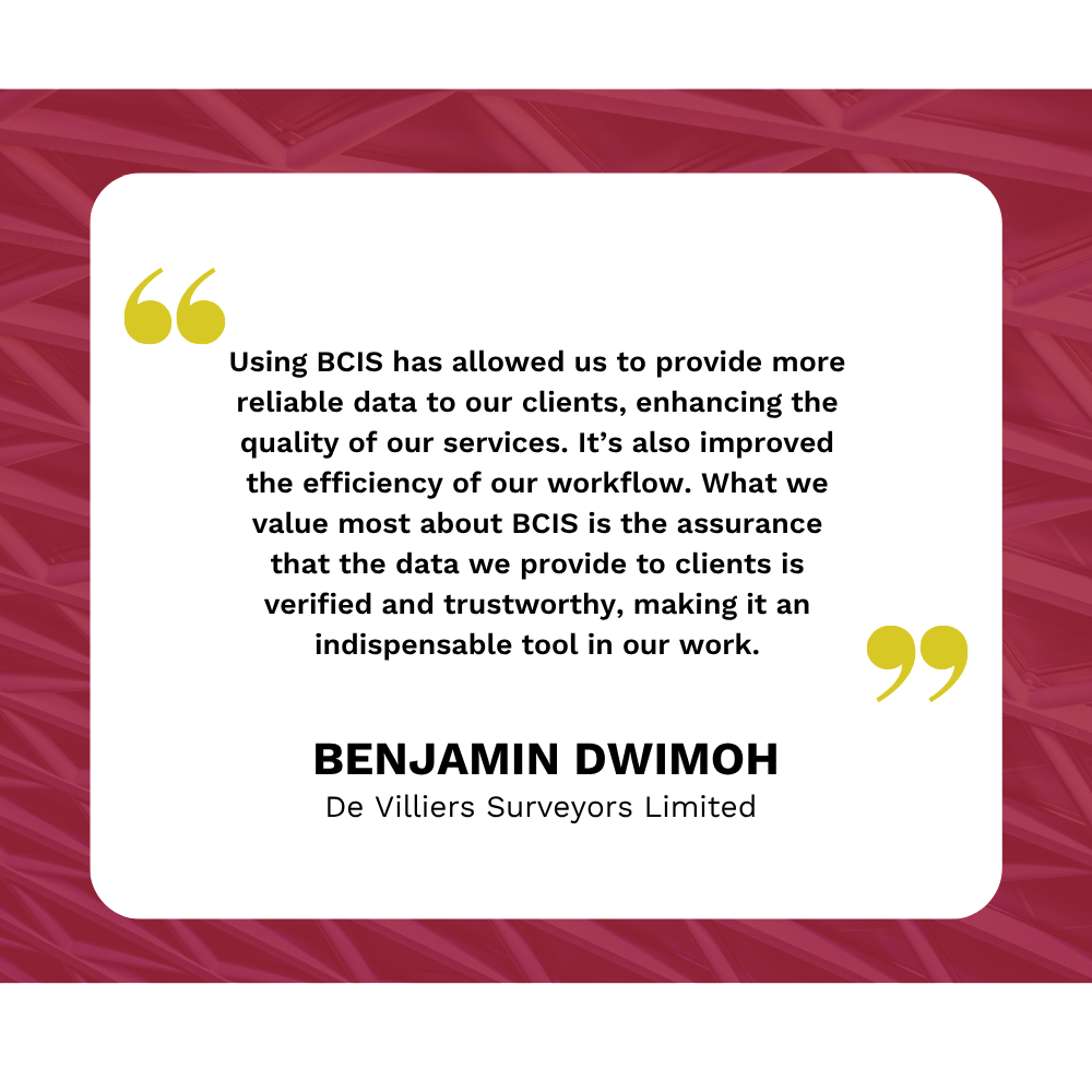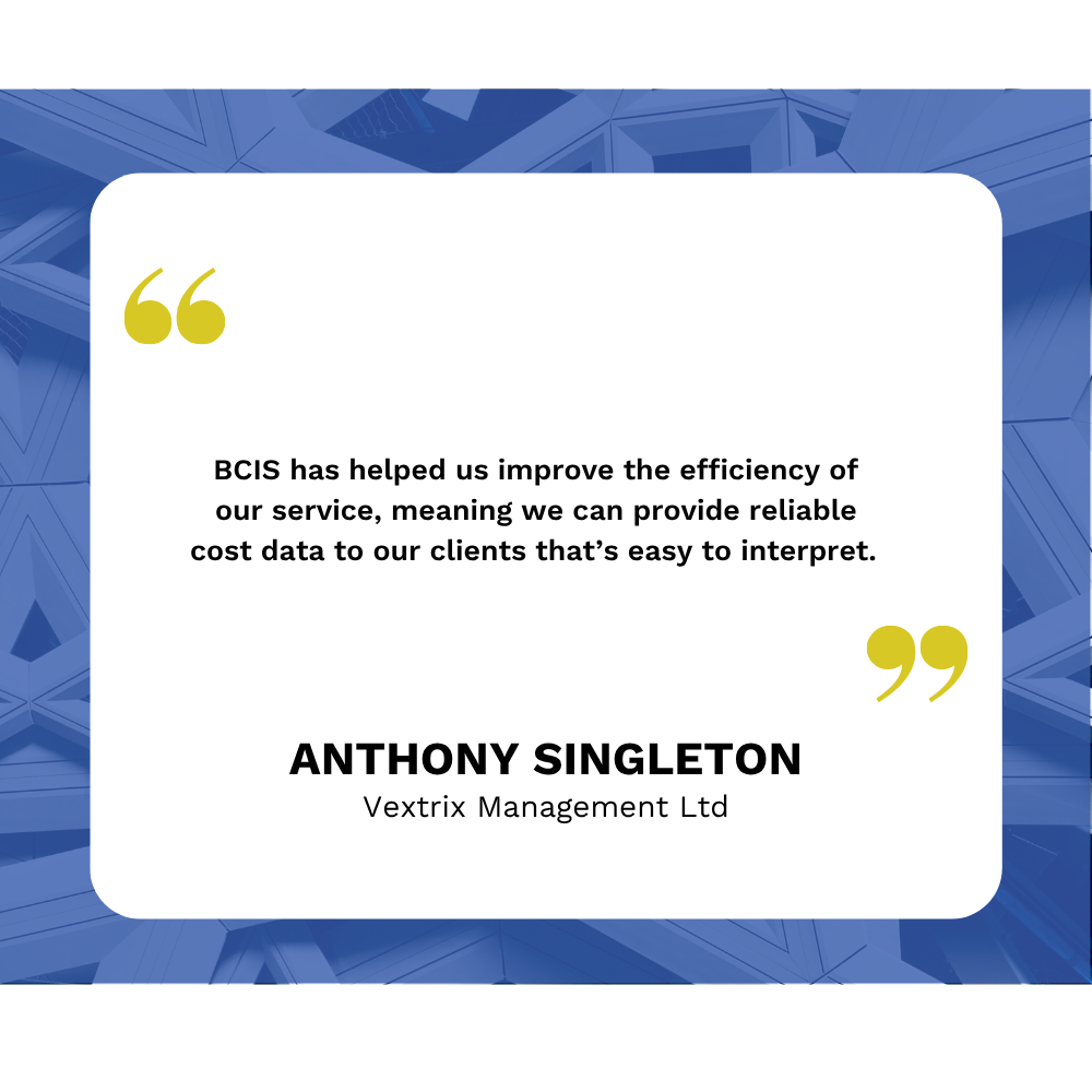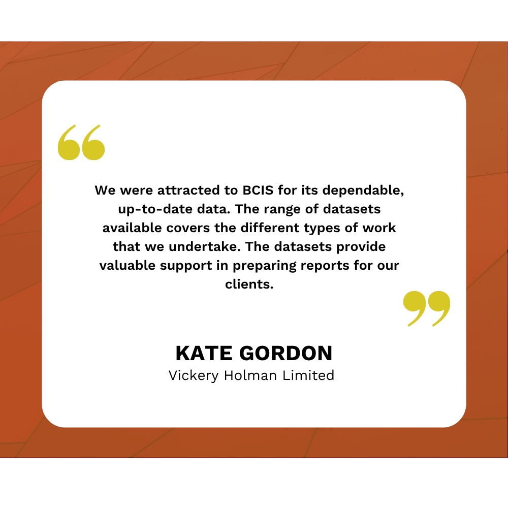 As a team of cost consultants, we need a reliable, reputable source of cost data and indices to strengthen our internal cost library and support the advice we provide to clients. BCIS was the natural choice—its historic cost data and indices are widely recognised and trusted by clients, consultants, and contractors alike.