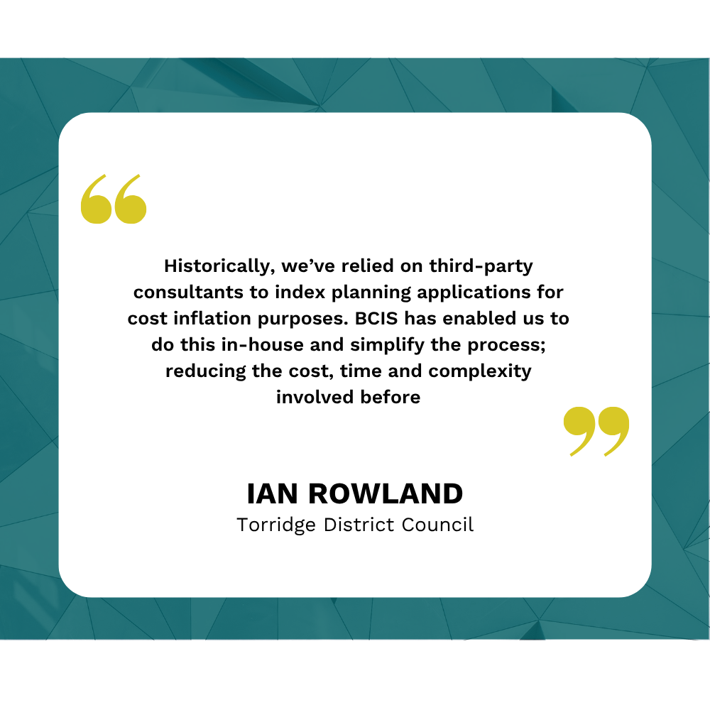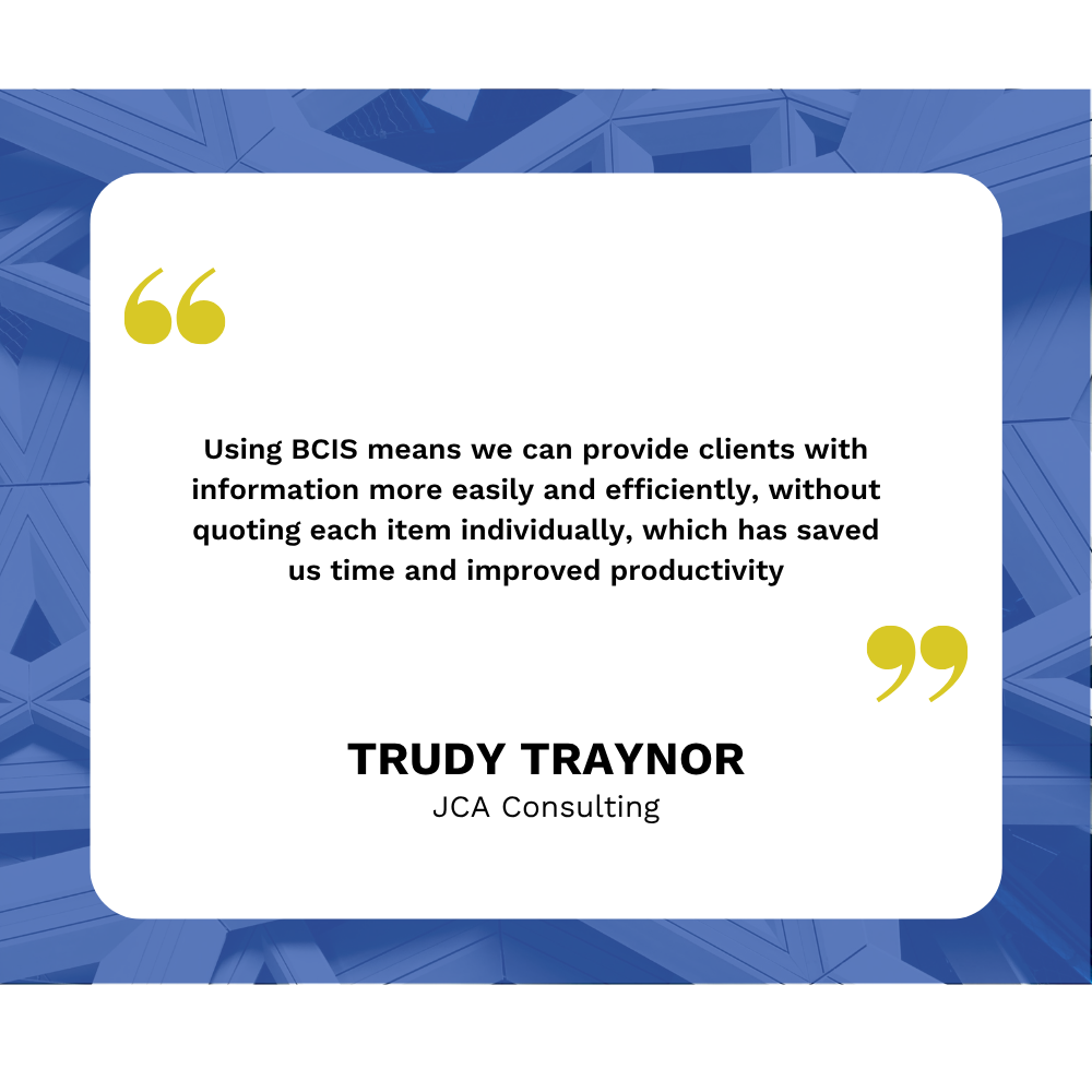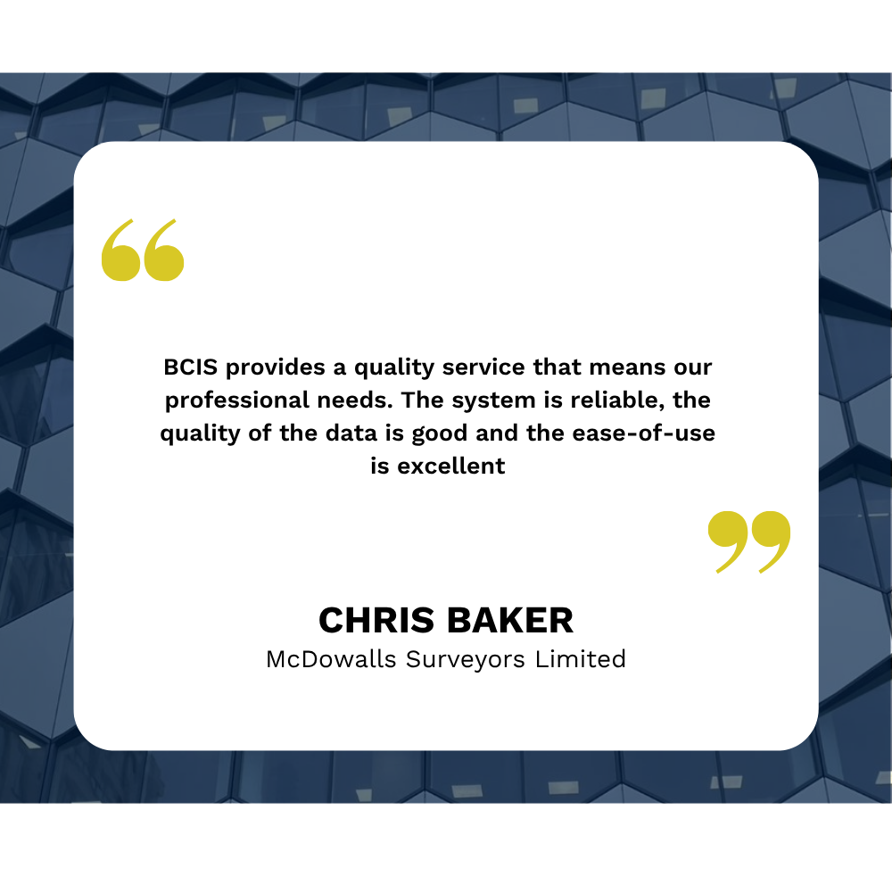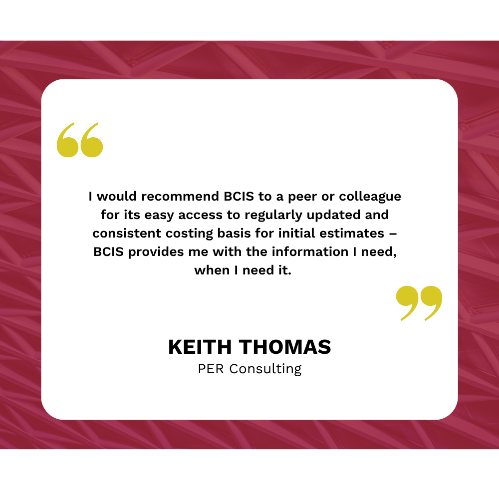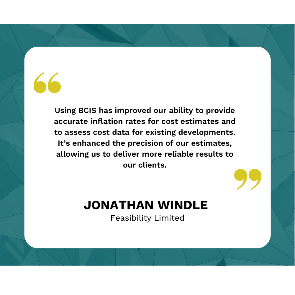 BCIS is particularly useful when in-house cost data is unavailable, helping us with cost estimates, inflation calculations, and market conditions and forecasts.