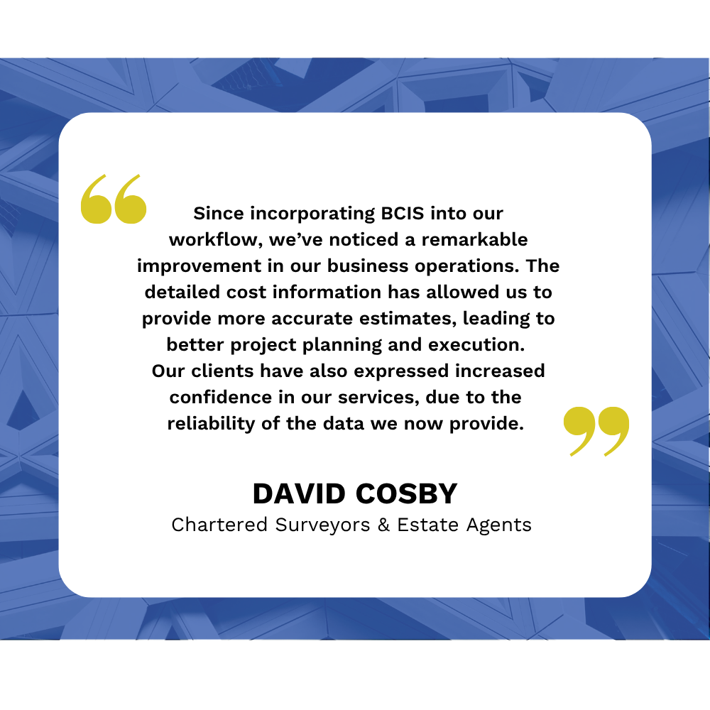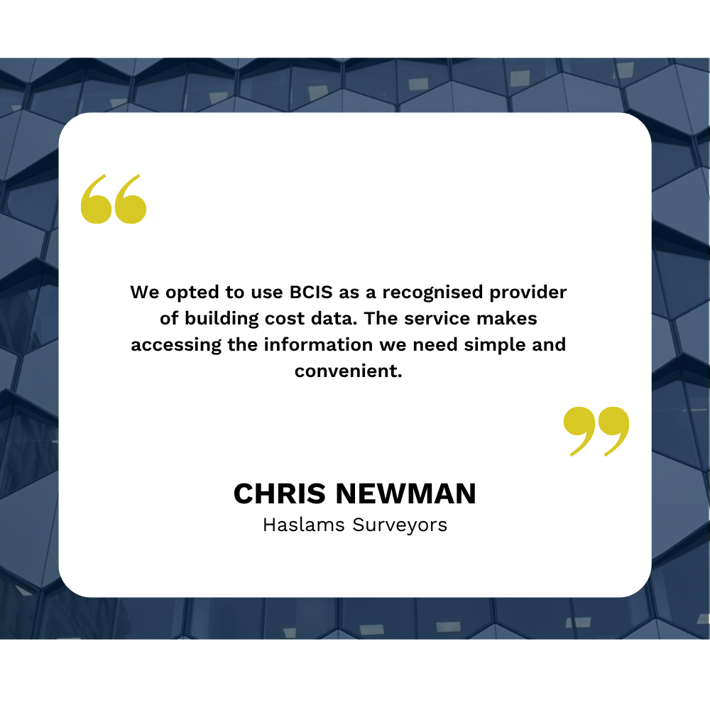 As quantity surveyors, staying up to date with tender price movements and construction costs is critical. BCIS, as the leading source of construction cost data in the UK, was the clear solution.