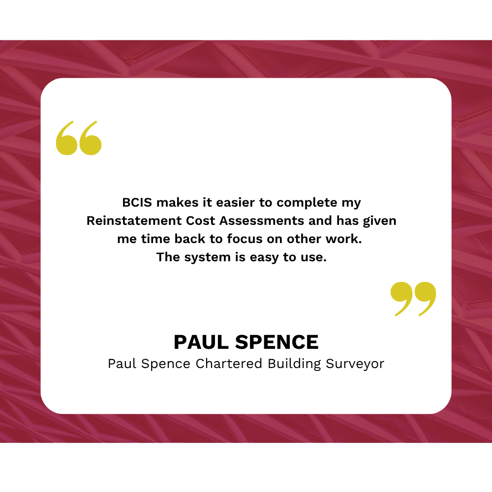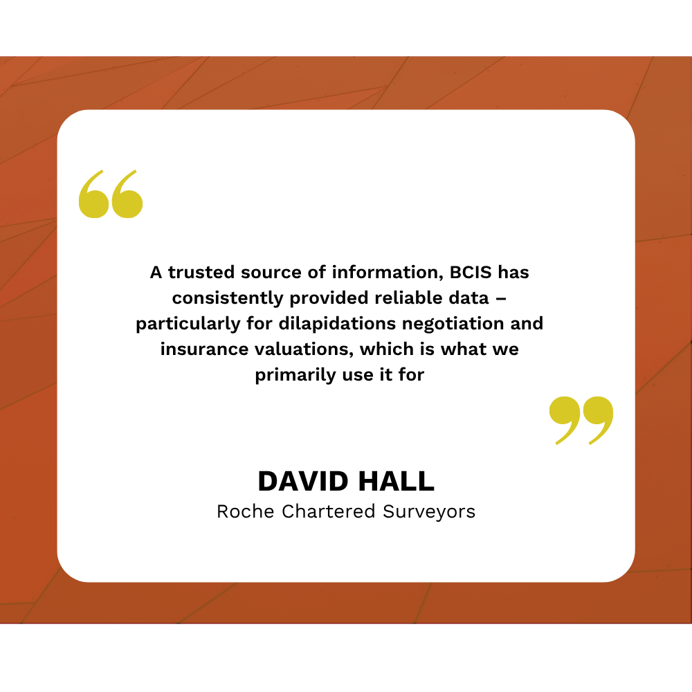 BCIS provides a wealth of reliable data on materials and labour that’s easy to retrieve from the archives. It’s proved invaluable when I’ve needed to present evidence in court for insurance claim disputes, as it’s helped stop disagreements from escalating.