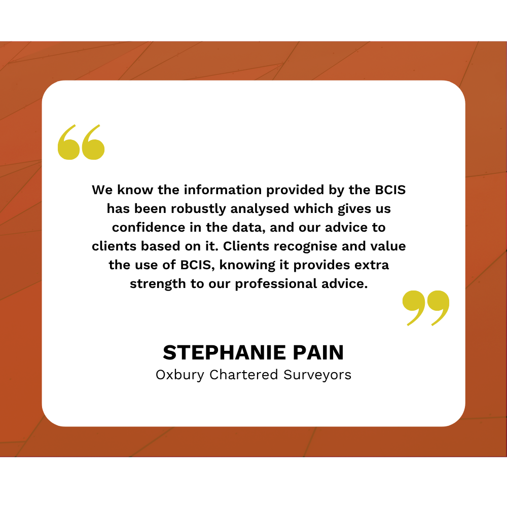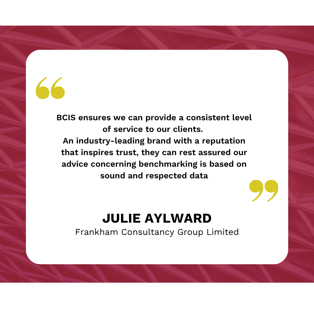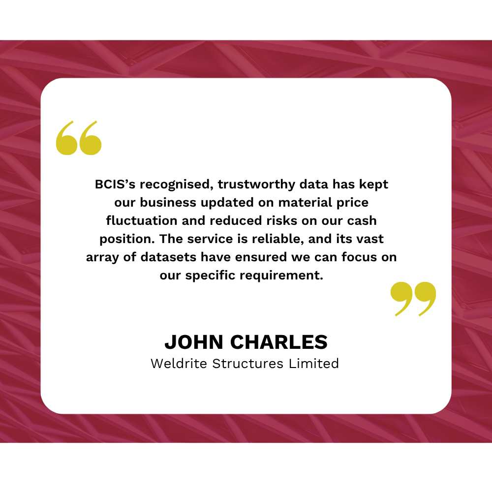 BCIS has become an essential tool for us, saving time and reducing administrative costs and we can trust the data is always in line with industry activity and costs. We choose BCIS because they are the market leaders, with a strong track record of reliability.