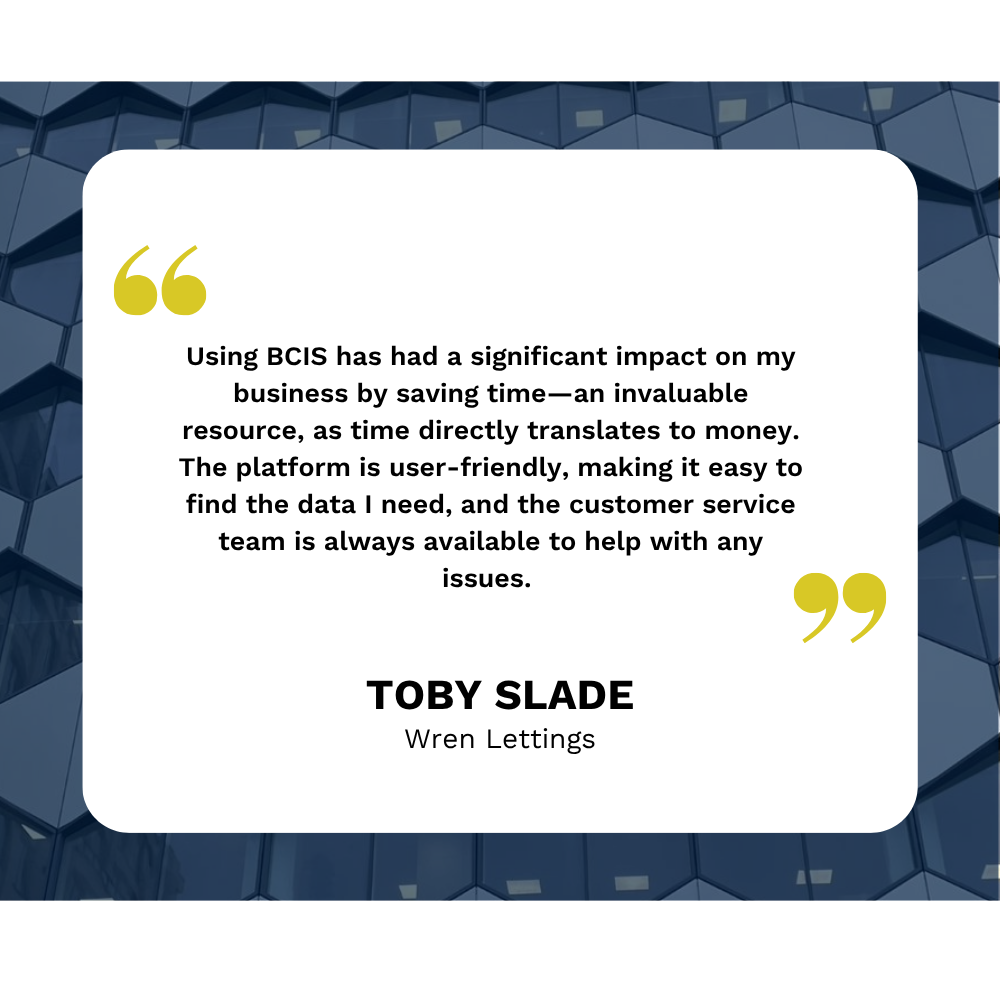 We turned to BCIS to address challenges in preparing claims for the effects of inflation on new housing developments. As the widely recognised and trusted RICS cost data service, BCIS was the natural choice. Since incorporating it into our processes, we’ve found it easy to obtain inflation claims, budget estimates, and insurance valuations. BCIS has improved both the accuracy and speed of our work, thanks to the easy-to-use platform and up-to-date data. We recommend BCIS for its authority as the UK’s leading cost data service, trusted across the industry for delivering reliable and comprehensive information.