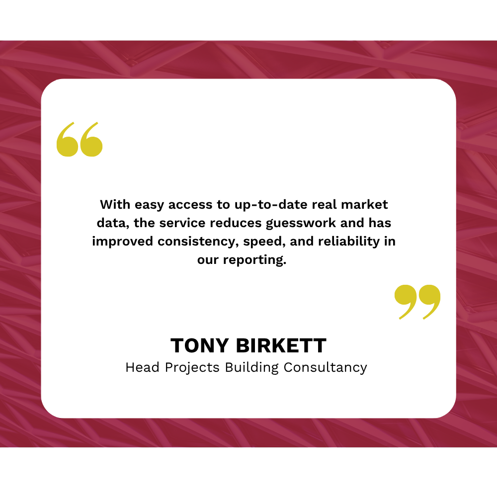 The service’s accessibility and the ability to add on relevant packages aids our provision of cost advice, benchmarking and forecasting for projects across the UK.